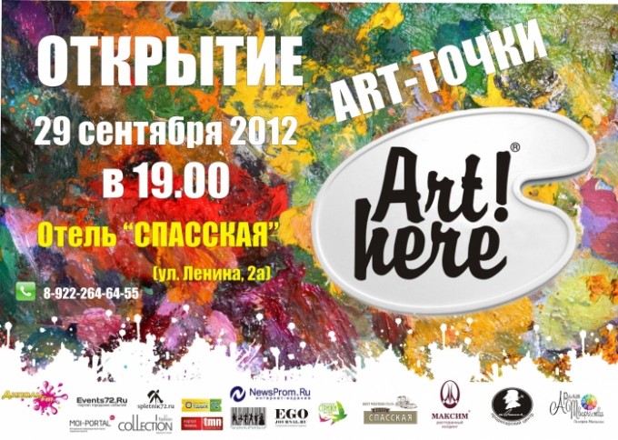 Радио «Диполь ФМ» представляет, открытие Art-точки проекта «Art Here!» или «Искусство Здесь!», под названием «…когда оживает искусство…» откроется 29 сентября 2012 года в 19.00 в отеле «СПАССКАЯ» (ул. Ленина, 2а). Зрители смогут увидеть творческие инсталляции оживших известных картин мирового искусства, и даже стать участником картины!