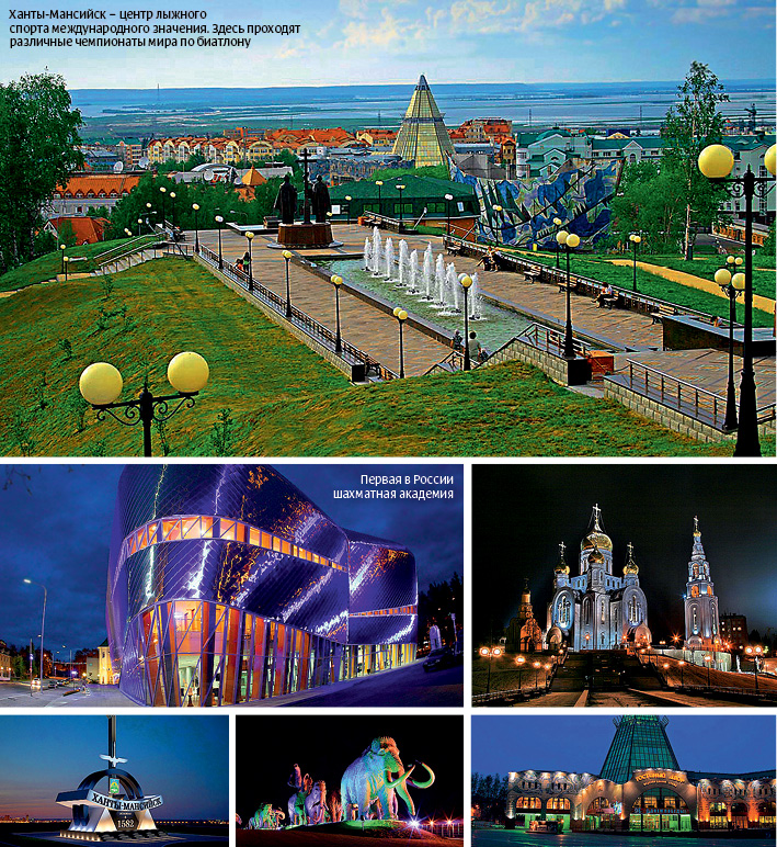 История современного Ханты-Мансийска началась в 1930 году, когда в трех километрах от села Самарово был образован рабочий поселок Остяко-Вогульск. Возможно, он так и остался бы тихим уголком, если бы в начале 80-х годов вблизи населенного пункта не забил нефтяной фонтан. За недолгий срок в этих местах был открыт ряд месторождений, среди них оказалось и Приобское – одно из крупнейших в мире. Сейчас Ханты-Мансийск превратился в передовой город, напоминающий по облику европейскую столицу. Здесь проходят крупнейшие мероприятия международного масштаба – фестиваль кинематографических дебютов «Дух огня», фестиваль программ и телевизионных фильмов «Золотой Бубен». В столице ХМАО–Югры неоднократно встречали гостей чемпионатов мира по биатлону – здесь расположился биатлонный стадион международной категории с крупнейшей в мире равнинной биатлонной трассой.