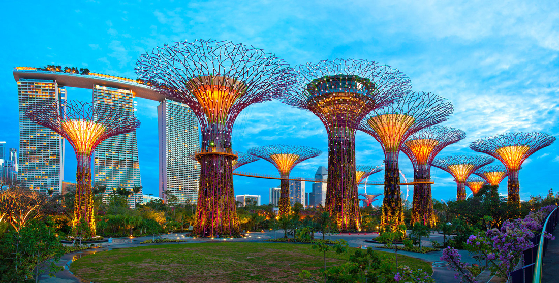 Супер-деревья выросли в Сингапуре – это 50-метровые вертикальные сады. Со временем они должны полностью покрыться живой зеленью.